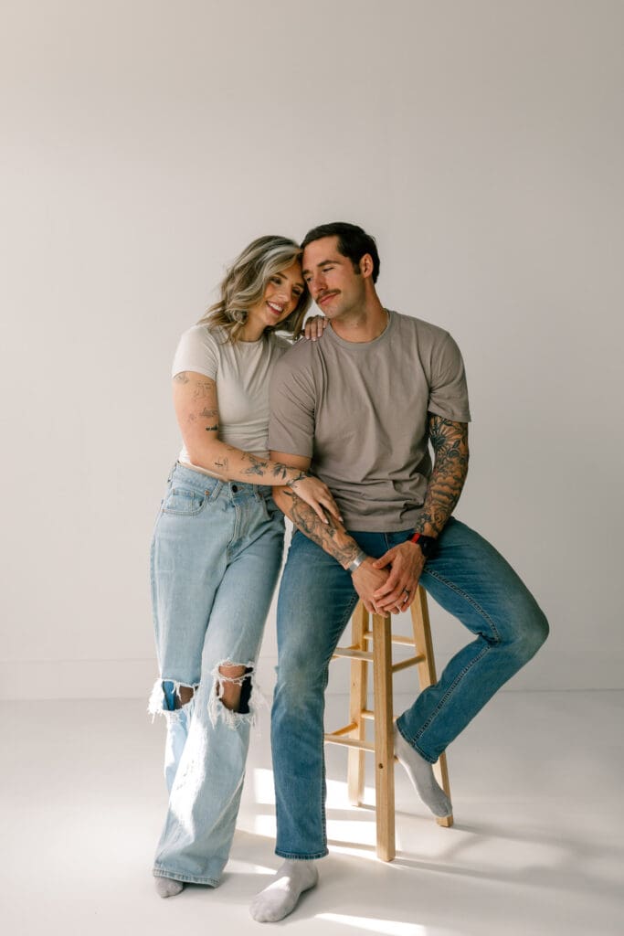 A lot of my couples photos involve sitting on the floor, leaning into each other, or cuddling in a chair. Those moments usually feel the most relaxed and natural.